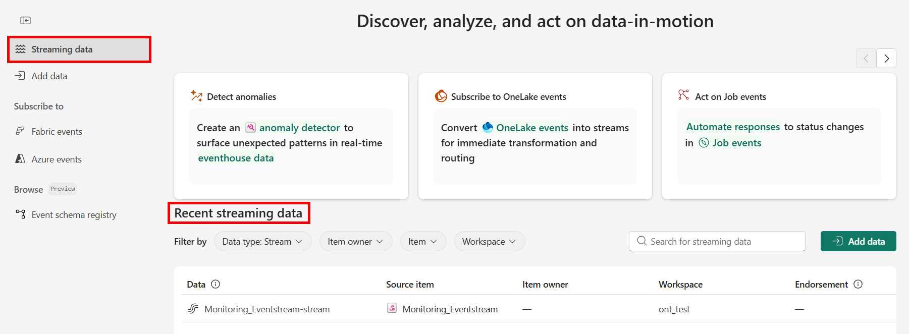 2. Select Real-Time hub on the left navigation menu, and confirm that you see the stream you created. Refresh the page if you don't see it.