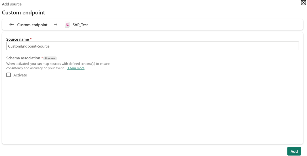In the Custom endpoint dialog, enter a name for the custom source under Source name, and then select Add.