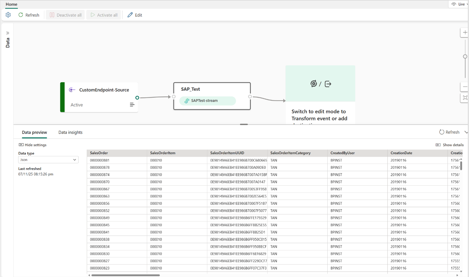 - Deploy and activate the replication flow to replicate the data to Eventstream