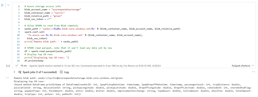 Run the following cell to enable access to the NYC GreenTaxi blob container.