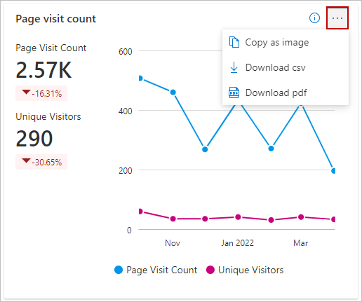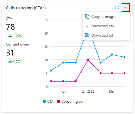 Select the ellipsis (three dots) to copy the widget image, download aggregated widget data as .CSV file, and download the image as a .PDF.