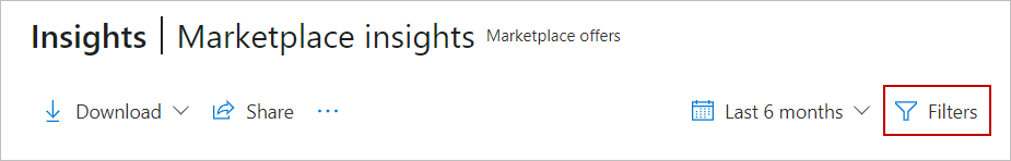 The Marketplace Insights dashboard presents an overview of offers' business performance in Microsoft Marketplace. This dashboard provides a broad overview of the following: