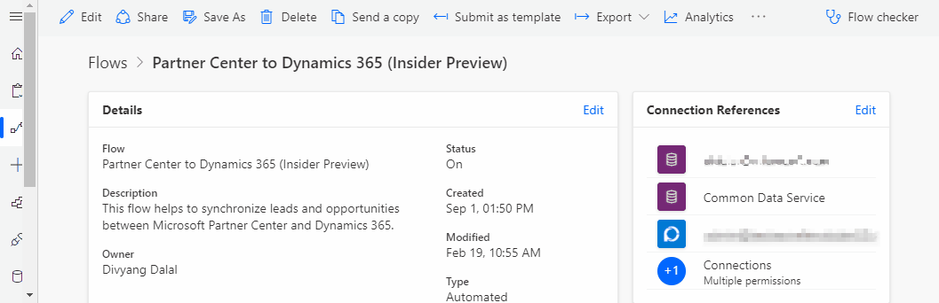 This creates records in the Solution Area, Solution Play & Partner Role in CRM. Also, it deactivates duplicate records if any and update records based on changes in Partner Center. It takes 2 mins or 3 mins for completion of flow.