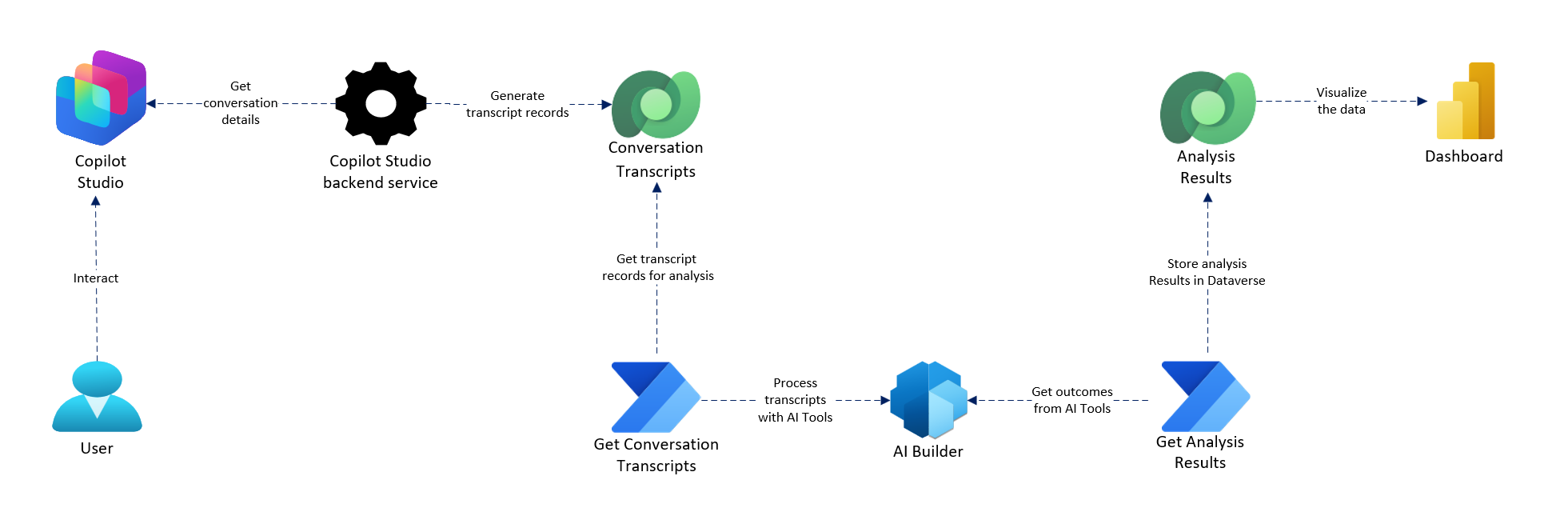 Organizations that use Copilot Studio agents for customer or employee support often struggle to extract valuable insights from conversation history. By using Power Platform capabilities like AI Builder, Power Automate, and Dataverse, this architecture provides: