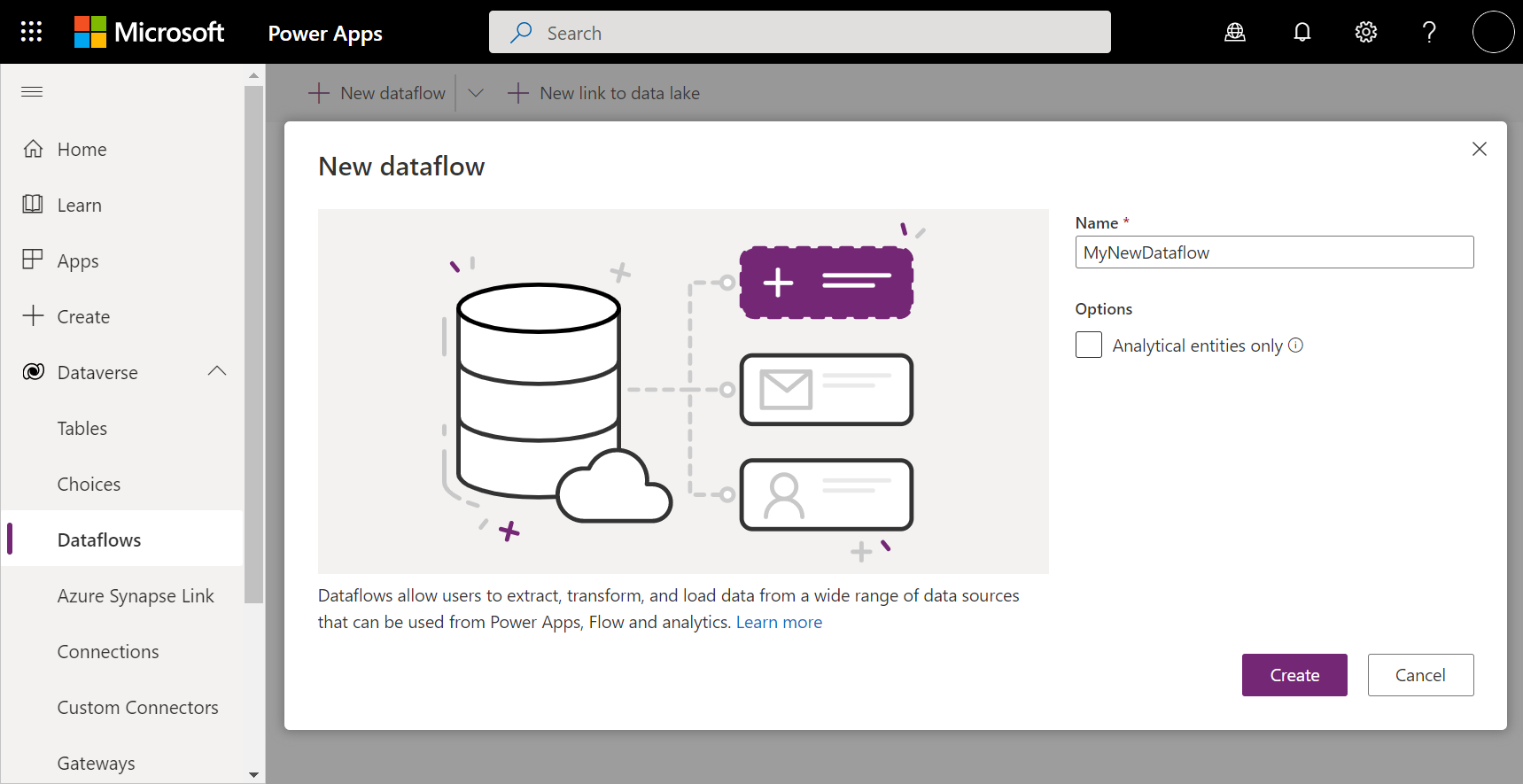 2. In the New dataflow dialog box, enter a name for your new dataflow.