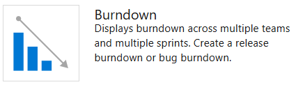 Displays a burndown chart that you can configure to span one or more teams, work item types, and time period. With it, you can create a release burndown, sprint burndown, or any burndown that spans teams and sprints.