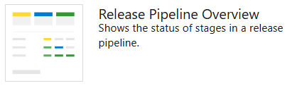 Configurable widget that you can use to view and track the status of a release pipeline. This widget shows the release as a series of environments, with the name of the release and the date or time it was started.