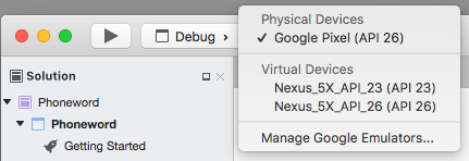 Visual Studio for Mac follows the Visual Studio practice of organizing code into Solutions and Projects. A Solution is a container that can hold one or more Projects. A Project can be an application (such as for iOS or Android), a supporting library, a test application, and more. In the Phoneword app, you added a new Android Project using the Android Application template to the Phoneword Solution created in the Hello, Android guide.
