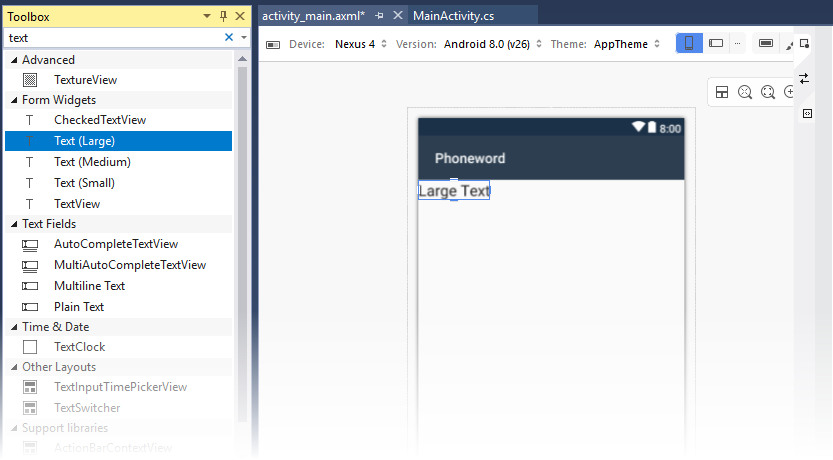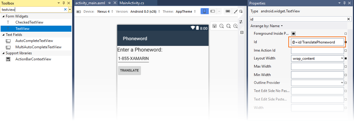 TextView translatedPhoneWord = FindViewById<TextView>(Resource.Id.TranslatedPhoneWord);