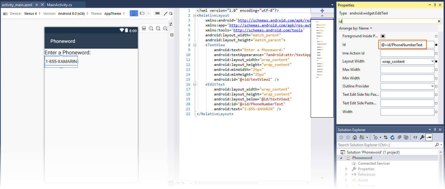 MainActivity.cs matches the project name (Phoneword) and then