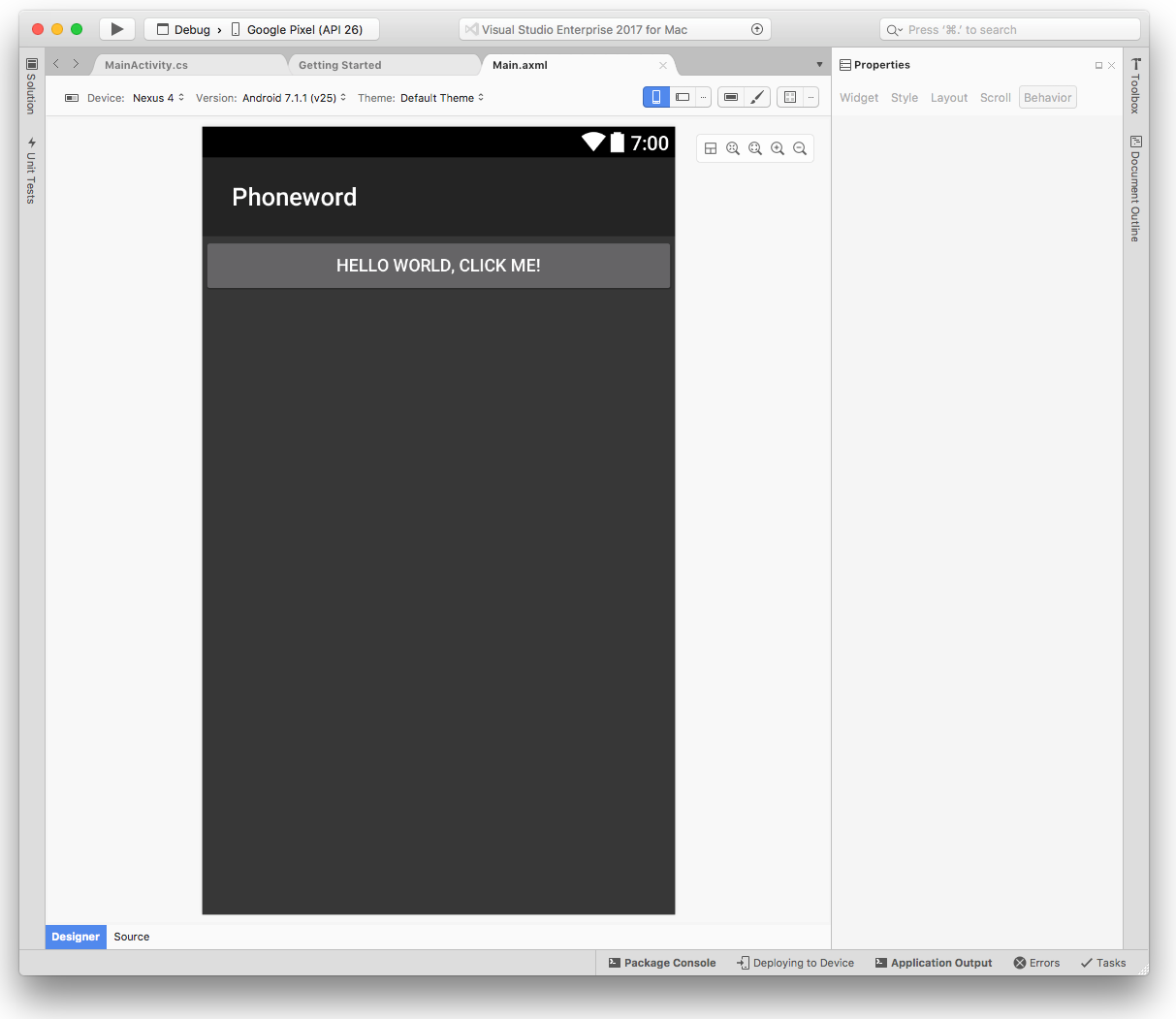 Double-click MainActivity.cs in the Solution Pad to open it.