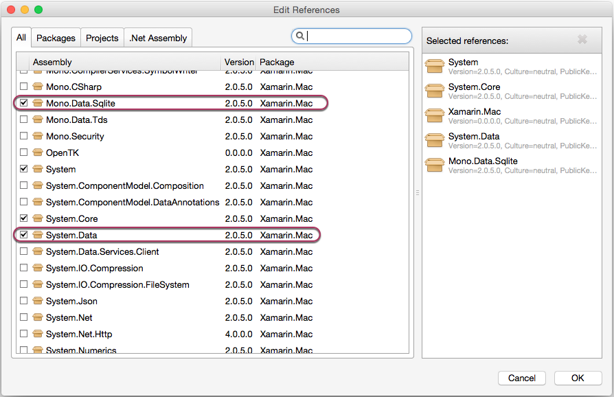 In this article, we'll cover the basics of working with key-value coding and data binding with SQLite Databases in a Xamarin.Mac application. It is highly suggested that you work through the Hello, Mac article first, specifically the Introduction to Xcode and Interface Builder and Outlets and Actions sections, as it covers key concepts and techniques that we'll be using in this article.