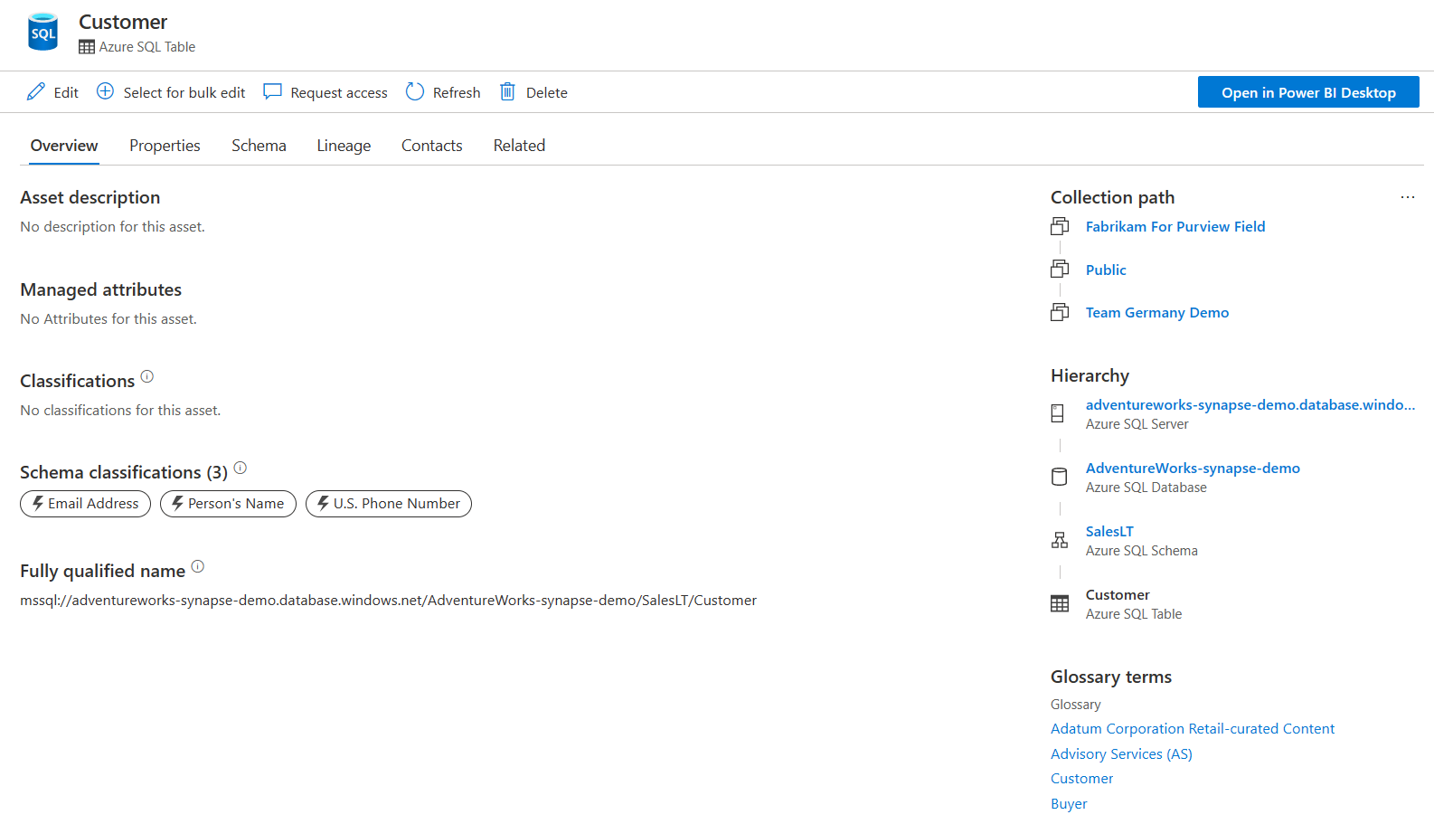 Following image shows classification applied while scanning on the Customer table in Azure SQL Database.