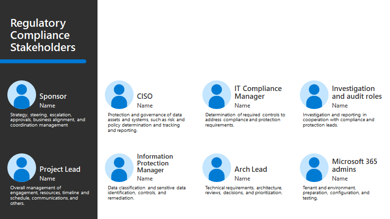 The PowerPoint slide deck of resources for this adoption content includes the following slide with a stakeholder view that you can customize for your own organization.