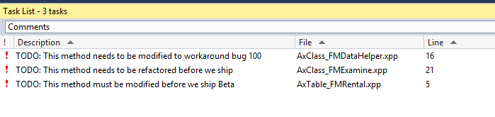 This section describes how to create a Visual Studio project from tasks (TODO comments) embedded in your X++ code.