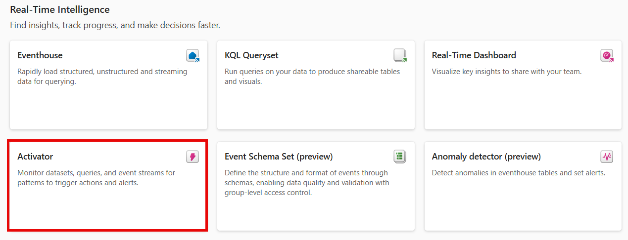En Crear, en la sección Real-Time Intelligence, seleccione Activador de datos.