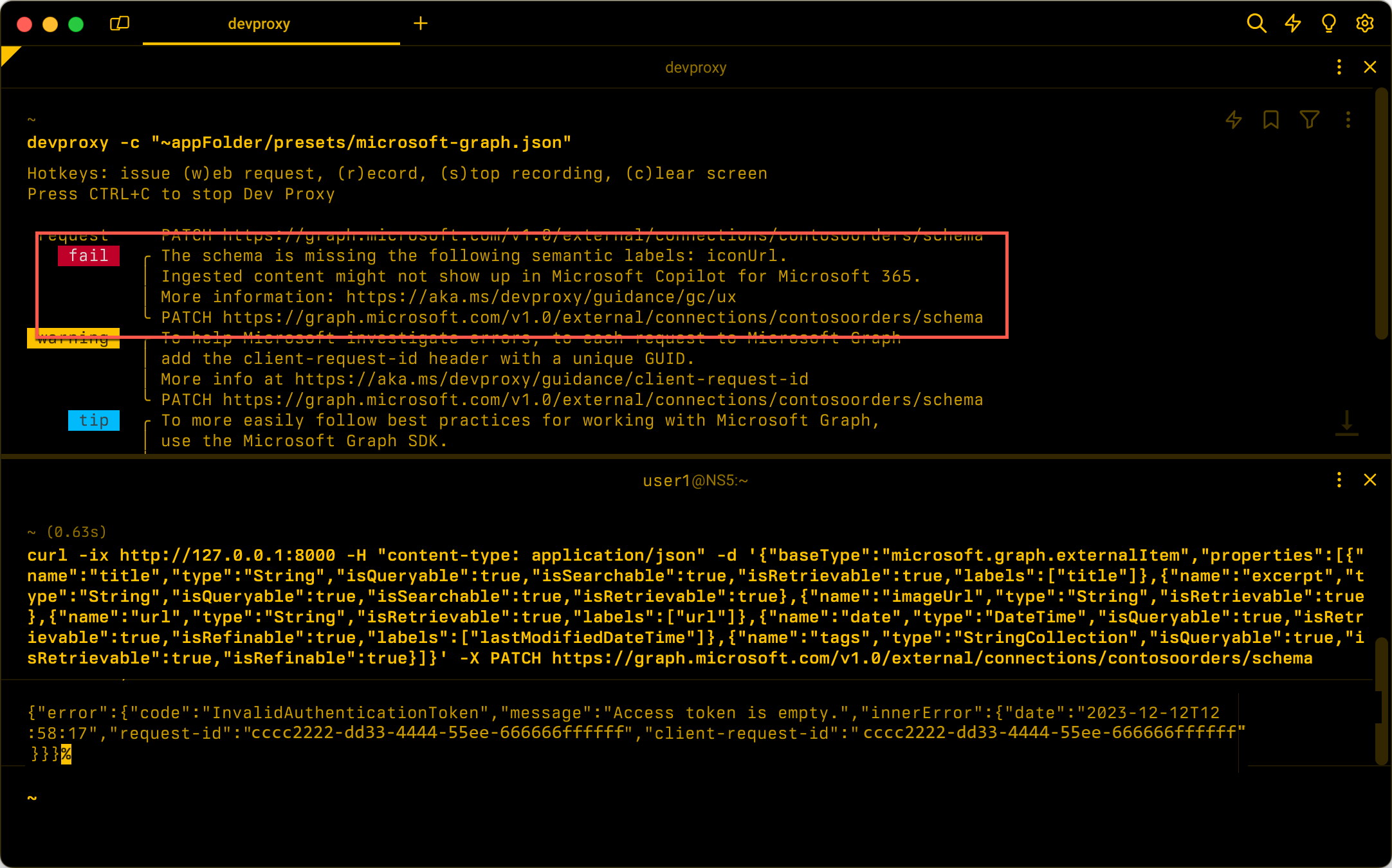 | Faltan uno o varios rótulos semánticos necesarios para Microsoft Copilot para Microsoft 365 | PATCH https://graph.microsoft.com/v1.0/external/connections/{id}/schema |