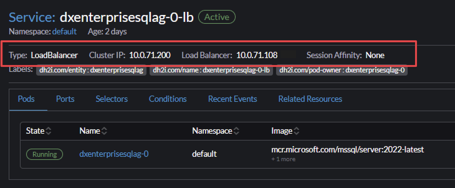 DxEnterprisesqlag-1-lbCaptura de la dirección IP del equilibrador de carga o externo