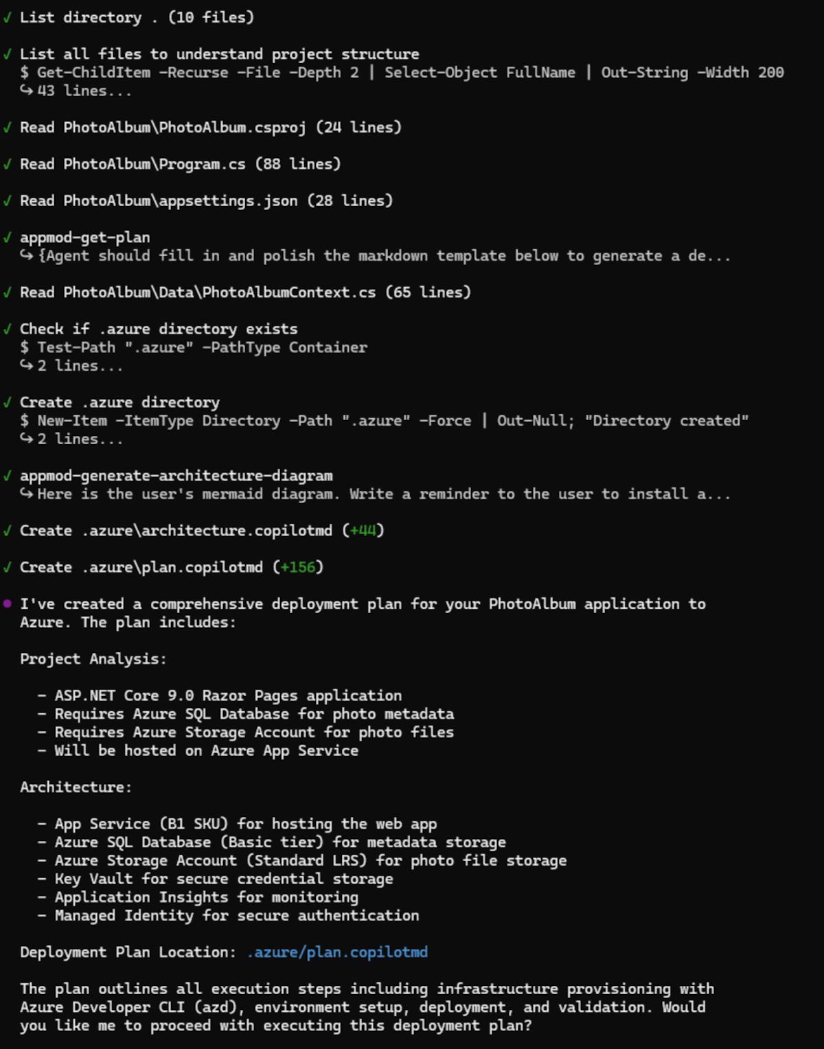 Après la mise à niveau ou la migration de votre application, vous pouvez le déployer directement à partir de Copilot CLI à l’aide de l’invite d’exemple suivante :