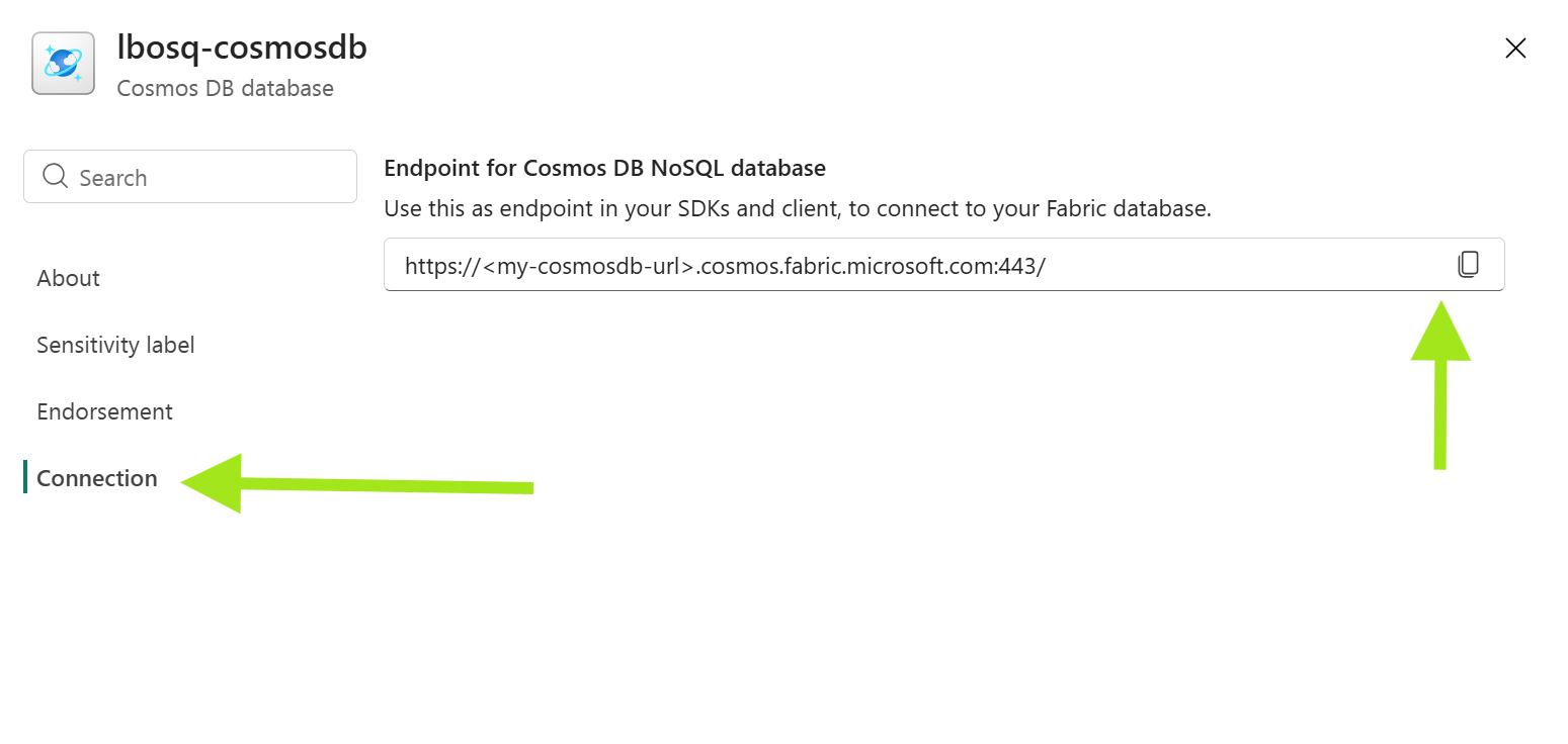 Récupérez votre URL de point de terminaison Fabric Cosmos DB.