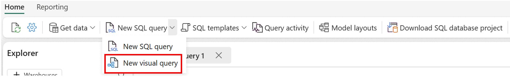 Dans l'onglet Accueil du ruban, sélectionnez Nouvelle requête visuelle.