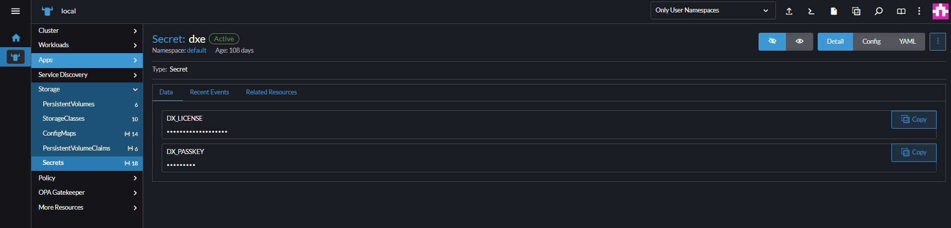 Ajoutez des secrets pour SQL Server et les clés secrètes de cluster DxEnterprise.