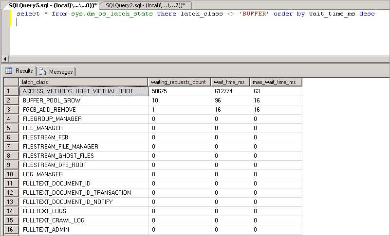 DBCC SQLPERF ('sys.dm_os_latch_stats', 'CLEAR');