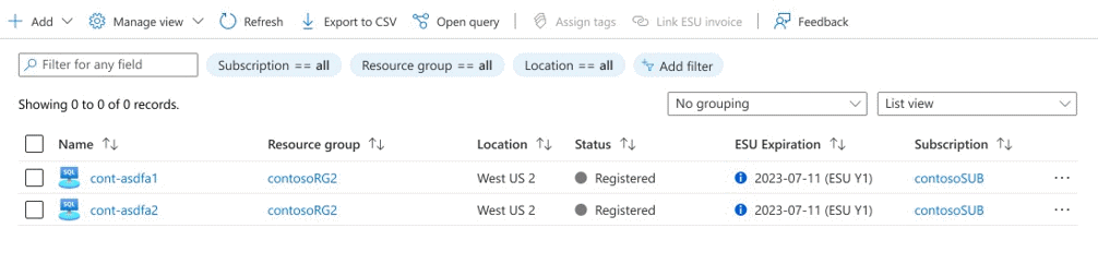 Suivez ces étapes pour lier une facture ESU à vos instances de SQL Server Azure Arc afin d'accéder aux mises à jour étendues. Cet exemple inclut les serveurs connectés et inscrits.