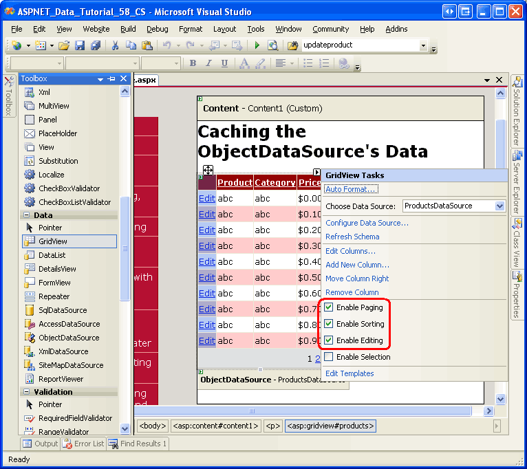 Figura 6: Abilitare il supporto di GridView per la modifica, l'ordinamento e il paging (fare clic per visualizzare l'immagine a dimensione intera)
