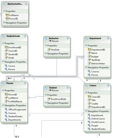 In Visual Studio aprire l'applicazione Web Contoso University creata nella serie di esercitazioni Introduzione a Entity Framework e Web Form e quindi aprire il diagramma di SchoolDiagram database.