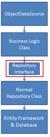 Questa operazione completa l'introduzione all'implementazione del modello di repository per l'uso del ObjectDataSource controllo con Entity Framework. Per altre informazioni sul modello di repository e sulla testabilità, vedere il white paper MSDN Testability e Entity Framework 4.0.