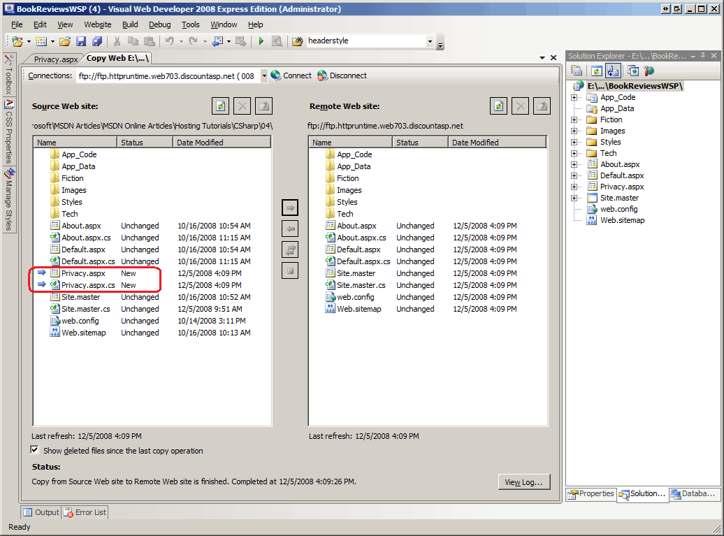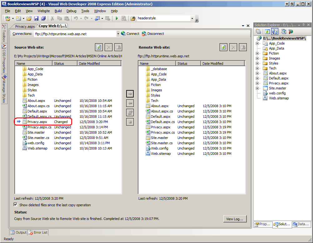 Figura 4: Lo strumento Copia sito Web include la nuova Privacy.aspx pagina nel riquadro sinistro (fare clic per visualizzare l'immagine a dimensione intera)