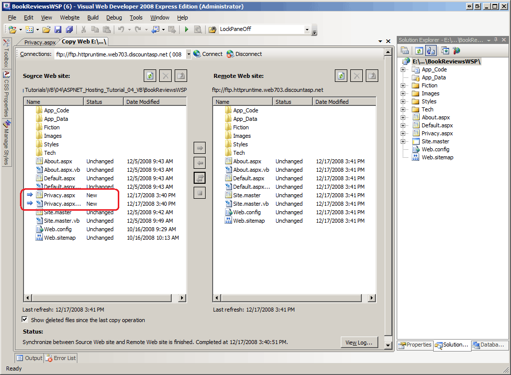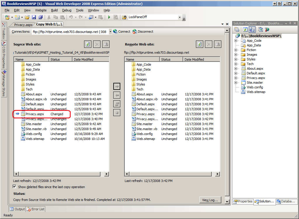 Figura 4: Lo strumento Copia sito Web include la nuova Privacy.aspx pagina nel riquadro sinistro (fare clic per visualizzare l'immagine a dimensione intera)
