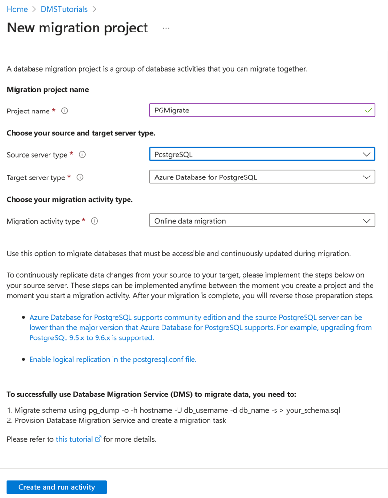 È possibile usare il Servizio Migrazione del database di Azure per eseguire la migrazione dei database da un'istanza di PostgreSQL locale a Database di Azure per PostgreSQL con tempi di inattività minimi per l'applicazione. In questa esercitazione si esegue la migrazione del database di esempio listdb da un'istanza locale di PostgreSQL 13.10 a Database di Azure per PostgreSQL usando l'attività di migrazione online in Servizio Migrazione del database di Azure.