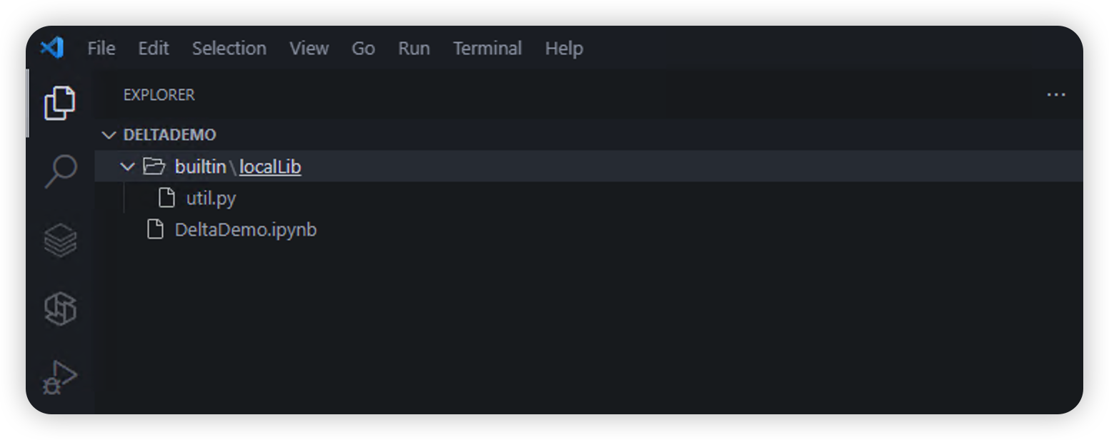 Lo screenshot precedente mostra una cartella localLib creata nella cartella builtin. La cartella contiene un file util.py. È possibile importare questo file nel file del notebook come modulo locale, come mostrato nel codice di esempio seguente. Dopo l'importazione, è possibile chiamare le funzioni definite nel file util.py dall'interno del file del notebook.