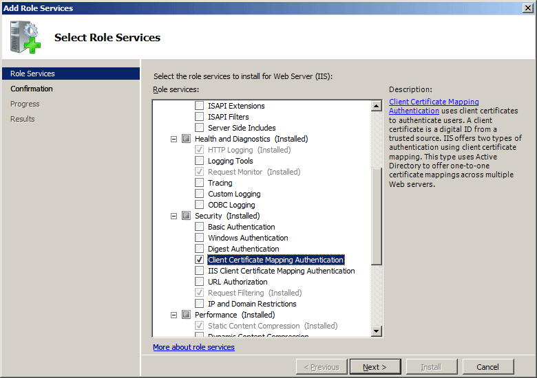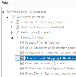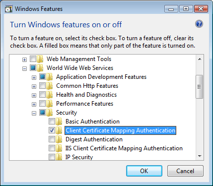 L'elemento <clientCertificateMappingAuthentication> non è disponibile nell'installazione predefinita di IIS 7 e versioni successive. Per installarlo, seguire questa procedura.