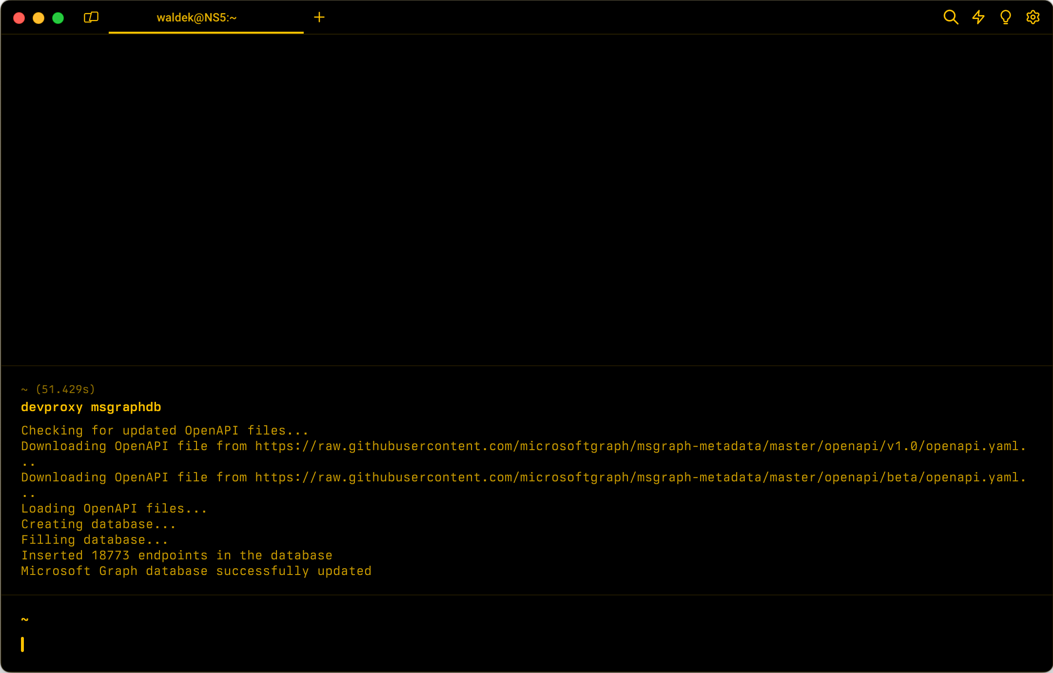 Aggiorna il database interno dei metadati dell'API Microsoft Graph.