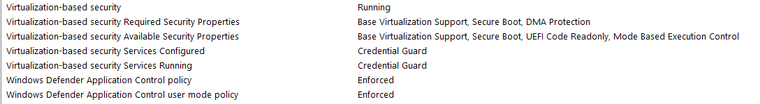 Get-CimInstance -ClassName Win32_DeviceGuard -Namespace root\Microsoft\Windows\DeviceGuard