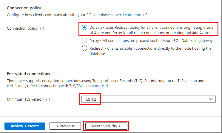 Azure 서비스 및 리소스가 이 서버에 액세스할 수 있도록 허용을 아니요로 설정된 상태로 둡니다.