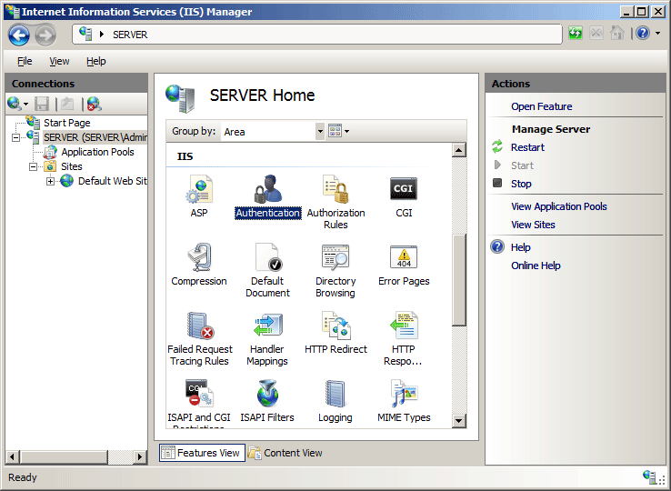 자세한 내용은 Microsoft TechNet 웹 사이트에서 IIS 7.0에서 인증 구성 을 참조하세요.