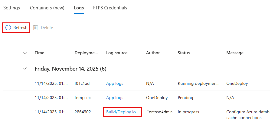 Stream App Service logs at: <URL>