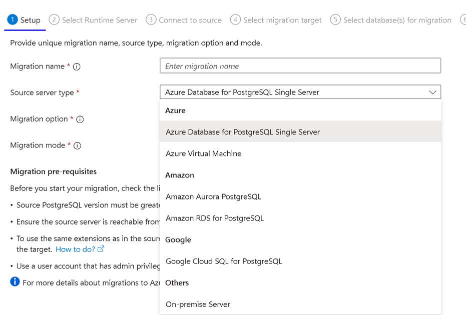 U kunt kiezen uit de volgende opties om te migreren van een postgreSQL-bronserver naar een flexibele server: