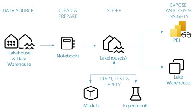Verkennen, opschonen en voorbereiden - De data science-ervaring van Fabric ondersteunt het opschonen, transformeren, verkennen en het featuren van gegevens. Het maakt gebruik van ingebouwde Spark-ervaringen en Python-hulpprogramma's, bijvoorbeeld Data Wrangler en SemPy Library. In deze zelfstudie ziet u hoe u gegevens kunt verkennen met de seaborn Python-bibliotheek en gegevens opschonen en voorbereiden met Apache Spark.
