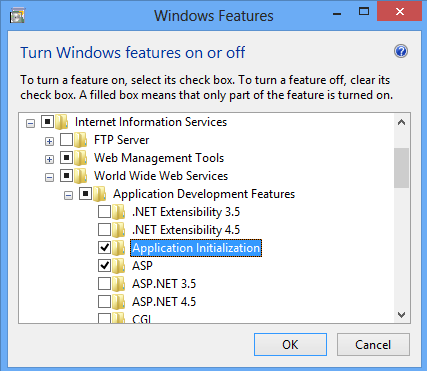 - Expand Internet Information Services, expand World Wide Web Services, expand Application Development Features, and then select Application Initialization.
