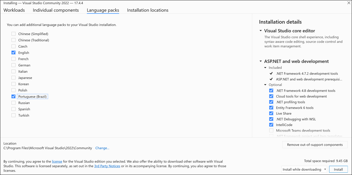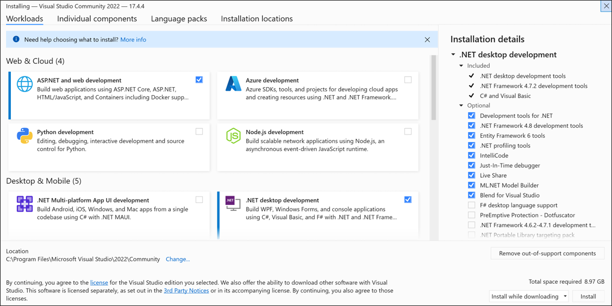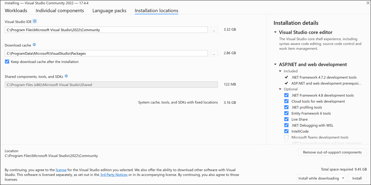 Nadat u de gewenste workloads hebt gekozen, selecteert u Installeren.