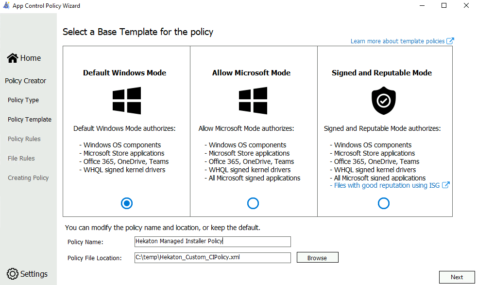 $AppControlPolicyXMLFile = 'C:\Temp\test\Hekaton_Custom_CIPolicy.xml'