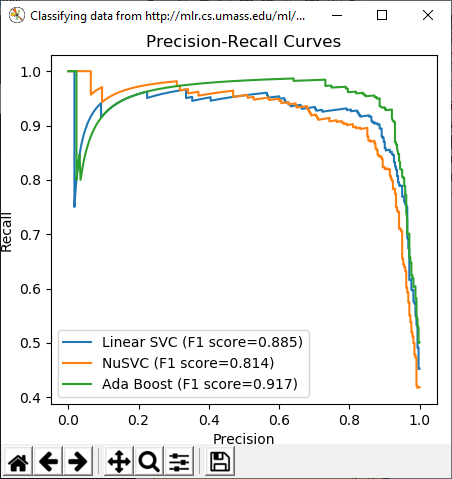5. Para executar o programa, selecione Depurar>Iniciar sem Depuração ou use o atalho Ctrl+F5. O programa gera um grafo de curva de recall de precisão: