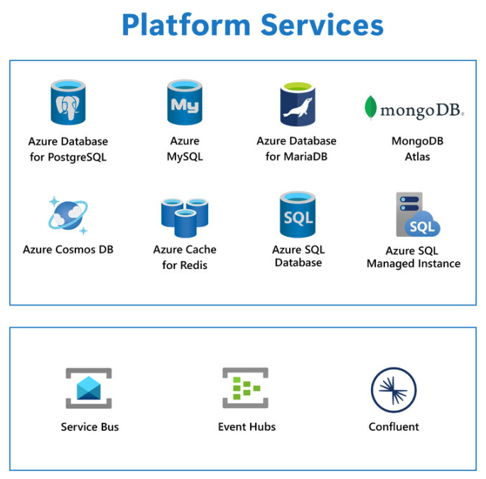 Além de fornecer várias opções para executar seu código Java, o Azure oferece uma ampla gama de serviços totalmente gerenciados para dar suporte às suas necessidades de banco de dados - incluindo Banco de Dados do Azure para PostgreSQL, Banco de Dados do Azure para MySQL, MongoDB Atlas, Azure Cosmos DB, Banco de Dados SQL do Azure e Instância Gerenciada SQL do Azure. O mesmo vale para mensagens, com opções que incluem o Barramento de Serviço do Azure, Hubs de Eventos do Azure e Apache Kafka para Confluent Cloud.