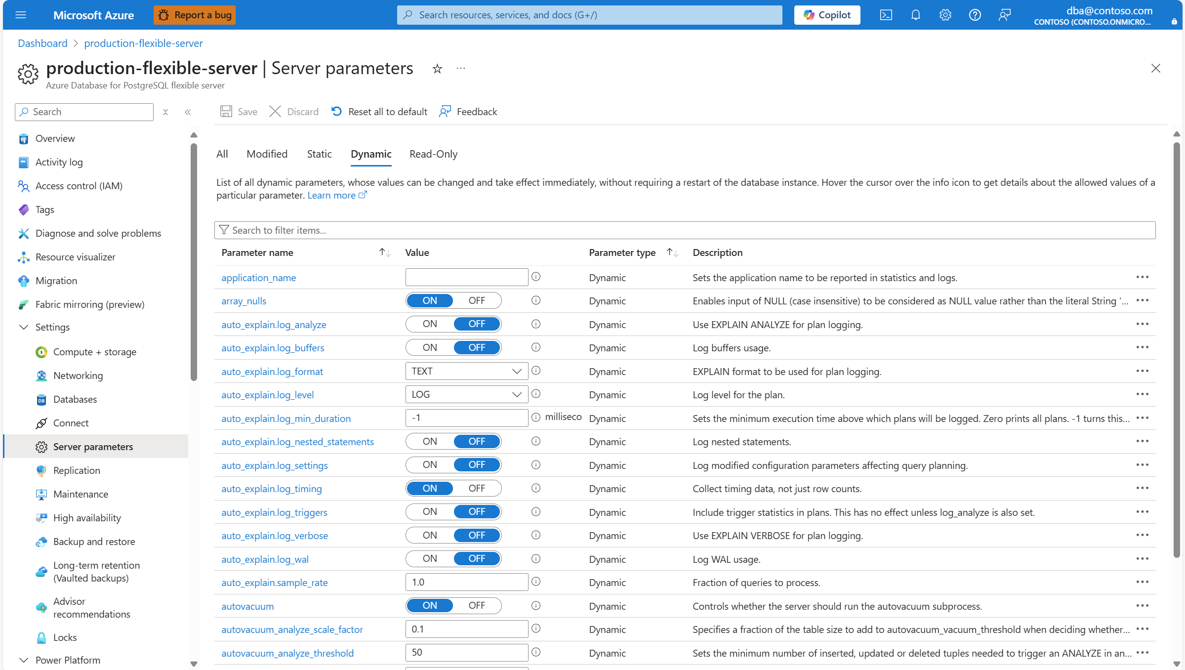 Este artigo fornece instruções passo a passo para listar parâmetros de servidor dinâmico de leitura-gravação de um banco de dados do Azure para servidor flexível PostgreSQL.