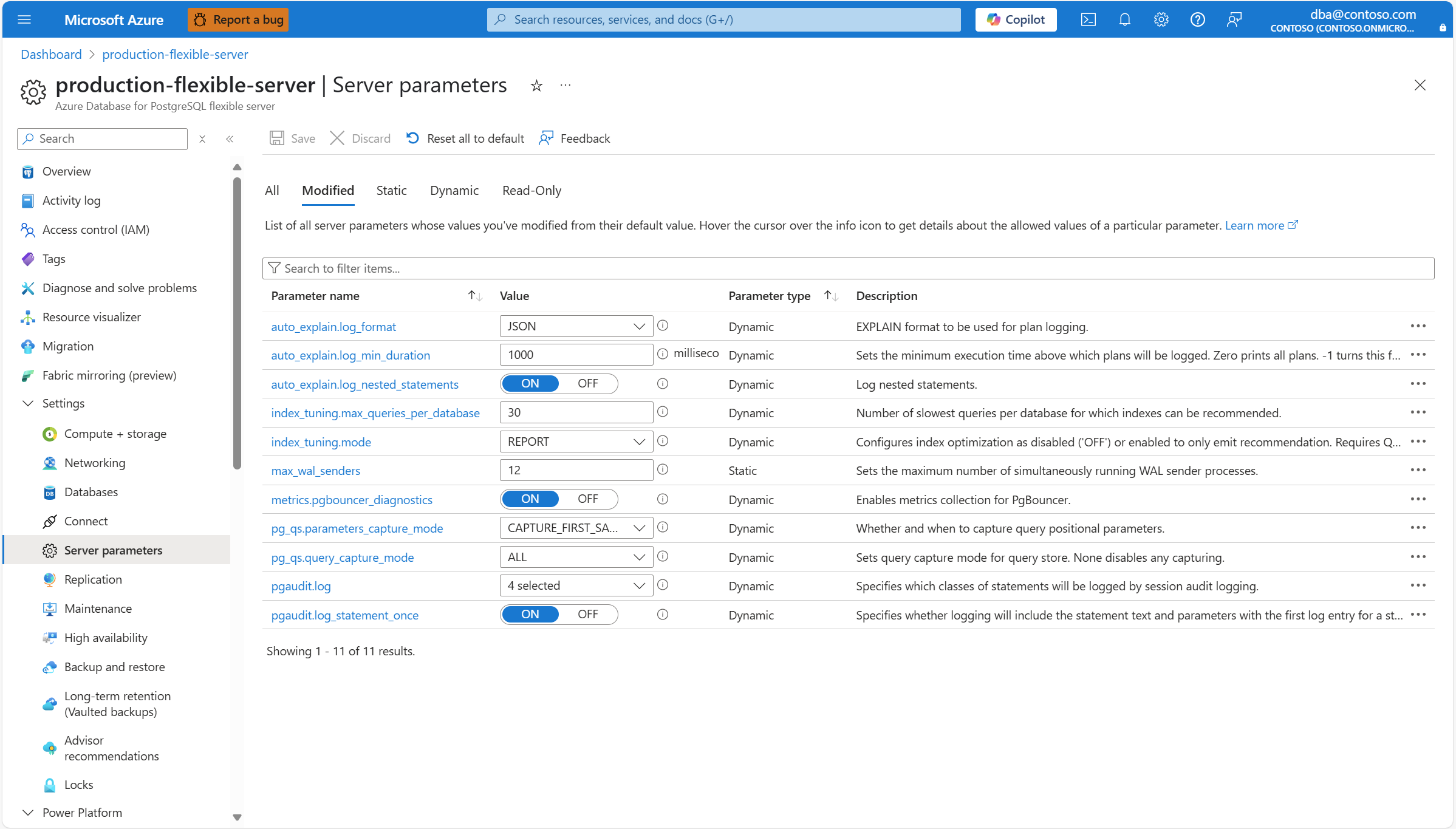 Den här artikeln innehåller stegvisa instruktioner för att återställa alla serverparametrar till standardinställningarna för en flexibel Azure Database for PostgreSQL-server.